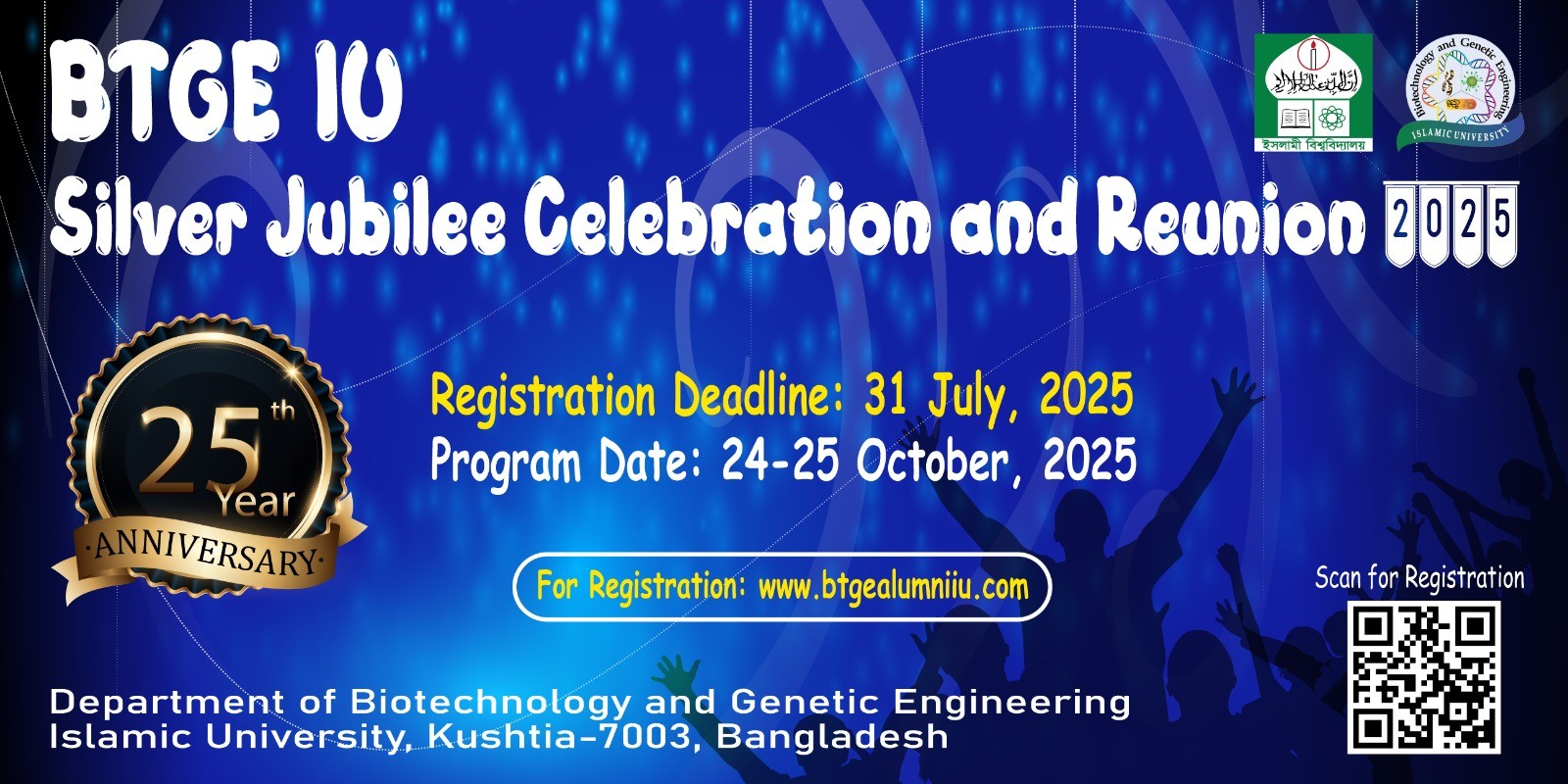 Founded in 1998, the department commenced its academic activities from the academic session 1998-1999 with a view to providing high quality education and research in the field of biotechnology and genetic engineering. Founding Chairman was Prof. Dr. M. Alauddin, a reputed professor and ex-Vice Chancellor of the Islamic University, Kushtia and Prof. Dr A.K.M. Nazmul Huda is currently serving as the Chairman of the department.